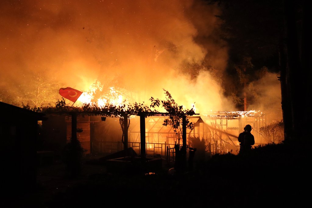 SCHIEDAM - Een forse brand legde gisteravond laat op volkstuinencomplex Vijfsluizen meerdere tuinhuisjes in de as.