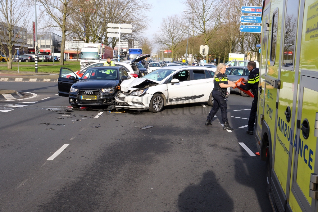 Schiedam - Donderdagmiddag ontstond op de 's-Gravelandseweg, ter hoogte van de De Brauwweg een behoorlijke verkeerschaos nadat twee auto's met elkaar in botsing waren gekomen.