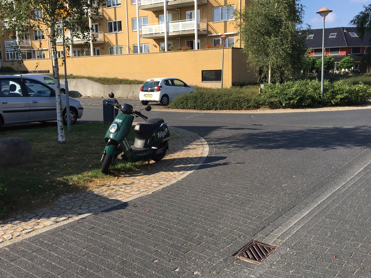 Na acht dagen contact met Fail-lix ( ridefelix) door bewoners en 2x toezegging dat de scooter verplaatst zou worden, staat hij er nog steeds verkeersgevaarlijk.