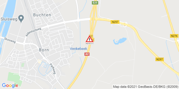 Weg afgesloten: A2 afrit Roosteren / N296 (46) > afrit Born / N297 (47).
