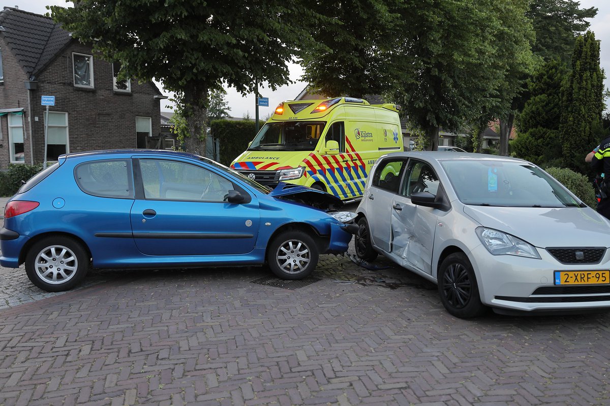 Drachten- Woensdagavond zijn twee voertuigen met elkaar in botsing gekomen op de kruising Geelgorstraat met de vogelweide.