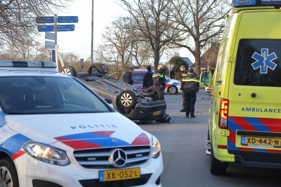 Op de kruising van de Skieding met de Leidijk kwamen twee auto’s met elkaar in botsing, waarbij één van de auto’s over de kop sloeg. Ambulance en politie kwamen met spoed ter plaatse om hulp te verlenen.