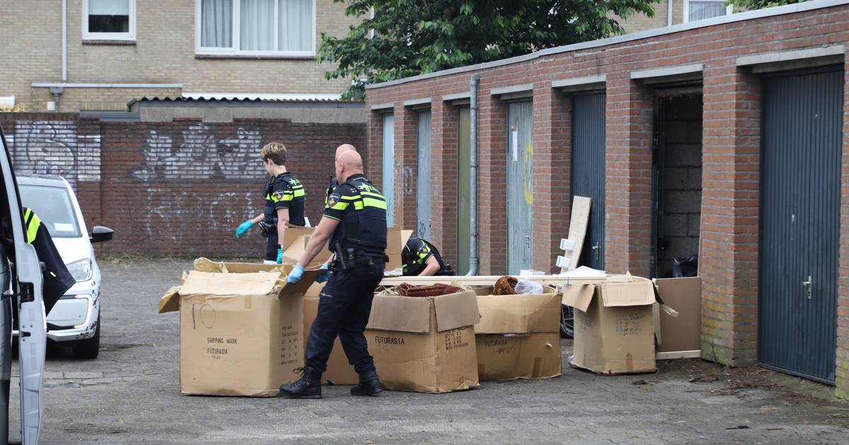 Dozen, een tas en andere spullen uit de box zijn doorzocht en meegenomen naar het bureau.