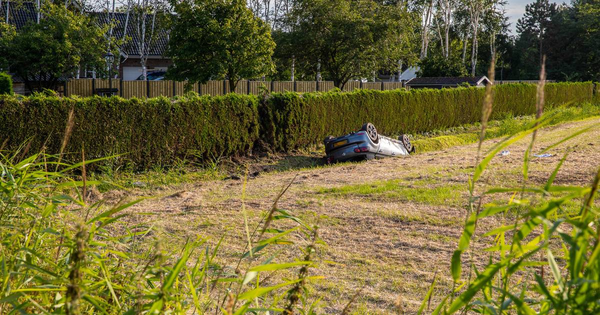 KRUISLAND - In Kruisland is donderdagavond een auto ondersteboven in de sloot van een weiland terechtgekomen.