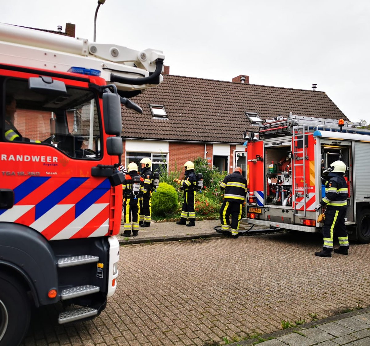 Sneek. Er kwam rook uit de woning, dit werd veroorzaakt door een droog gekookt pannetje. De woning is door ons geventileerd. Post IJlst was samen met ons opgeroepen om ter plaatse te gaan. #sneek #brandweer #IJlst.