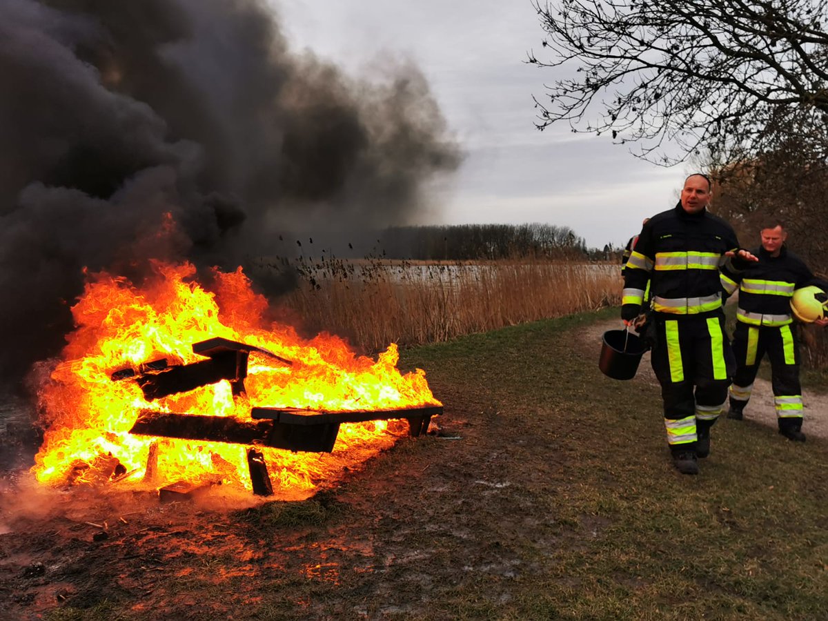 Sneek. ?? 02-5731 ?? @pol_sneek Picknick bank in de brand. Met vereende krachten geblust. Terug bij de TS nog extra hulp om het schoeisel schoon te spuiten. ?? @JanDouweGorter #sneek #snits #brandweer #brand..