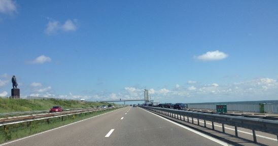 Een rijstrook minder op de Afsluitdijk (#A7) richting Den Oever door een ongeval bij de Brug over Stevinsluizen.