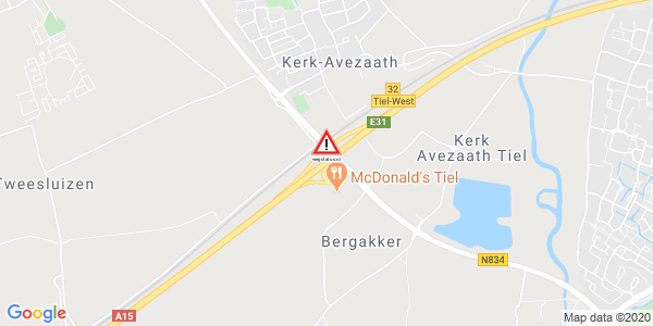 wegstatus: Weg afgesloten: A15 afrit Tiel-West / N834 (32). Ongeval(len)...