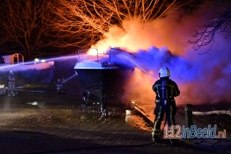 VRIEZENVEEN - Aan de Wierdenseweg in Vriezenveen is zaterdagavond een speedboot in brand gevlogen. De boot stond opgeslagen op een terrein nabij de parkeerplaats van het treinstation van Vriezenveen.