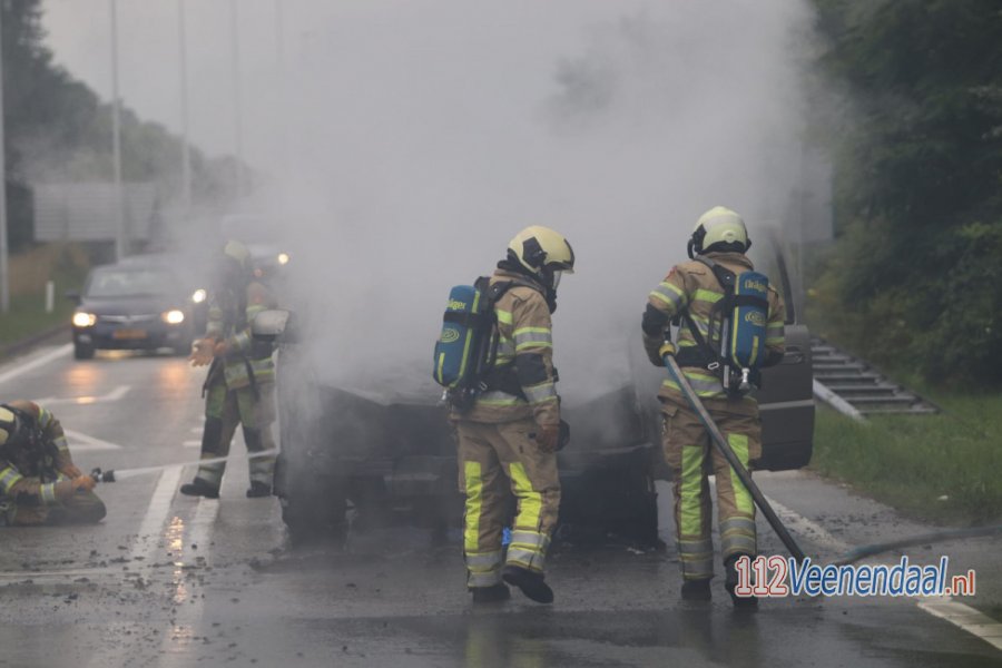 MAARN - Op de afrit van de A12 in Maarn is maandagavond rond 20:30 uur een auto in brand gevlogen. De brandweer van Maarn - Maarsbergen rukte met twee voertuigen uit.