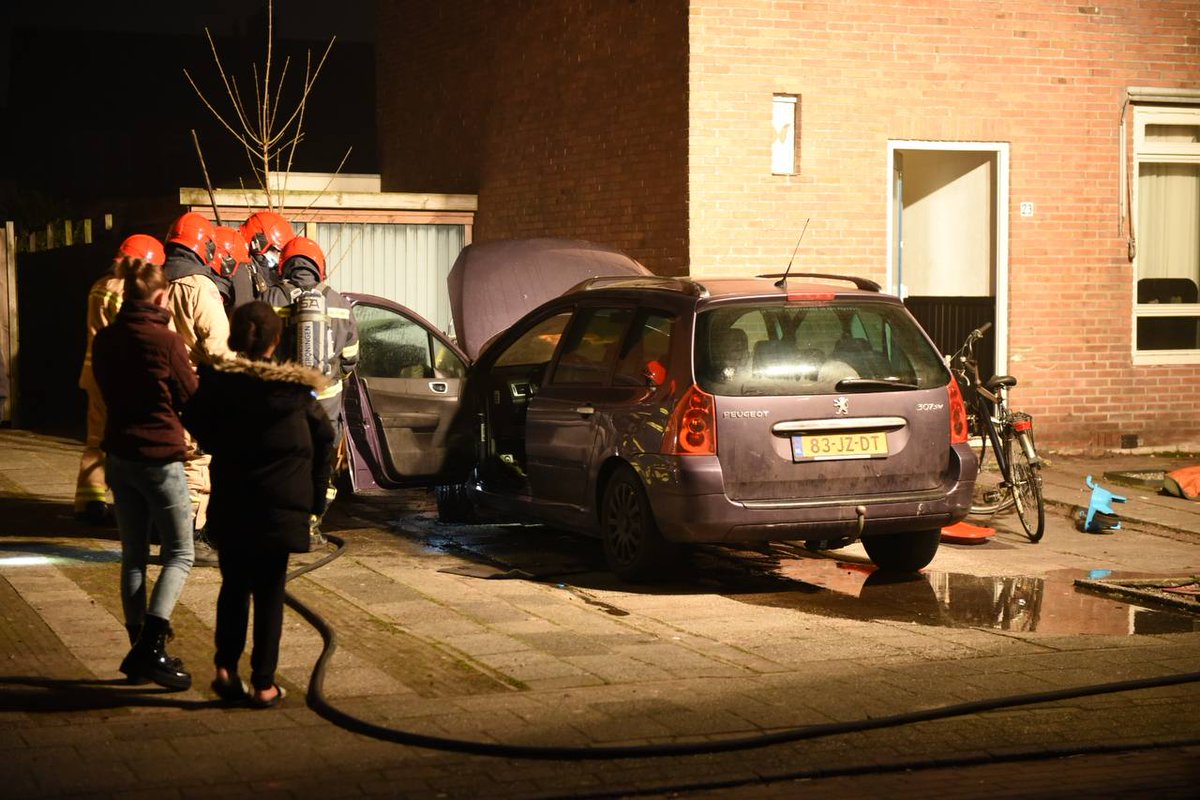 De auto stond geparkeerd op een oprit van een woning. De brandweer heeft de brand geblust.