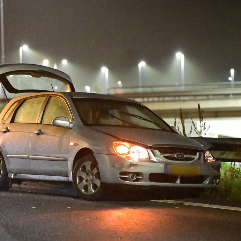 Velsen-Zuid, 3 november 2024 &8211; In de nacht van vrijdag op zaterdag is op de A22-afrit IJmuiden bij Velsen-Zuid een auto van de weg geraakt en in de vangrail tot stilstand gekomen.