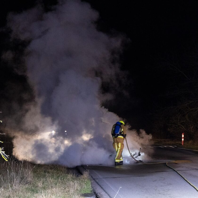 IJmuiden, 13 februari 2025 &8211; Op de Heerenduinweg nabij het IJmuiderslag is donderdagavond een motorvoertuig volledig uitgebrand.