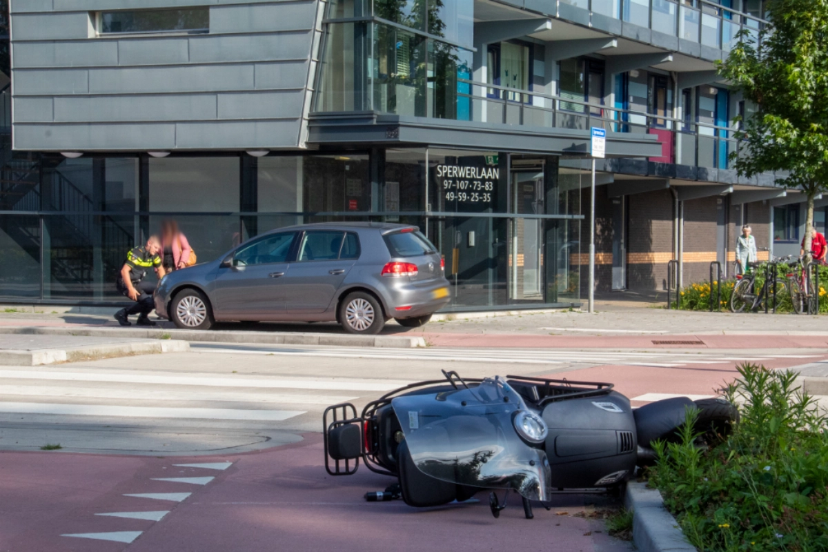 De scooterrijder is hierbij gewond geraakt. Hiervoor is een rapid responder van de ambulancedienst ter plaatse gekomen om de jongeman na te kijken. De scooter is beschadigd geraakt; de auto is er minder slecht aan toe. Hoe de aanrijding kon gebeuren is niet bekend.