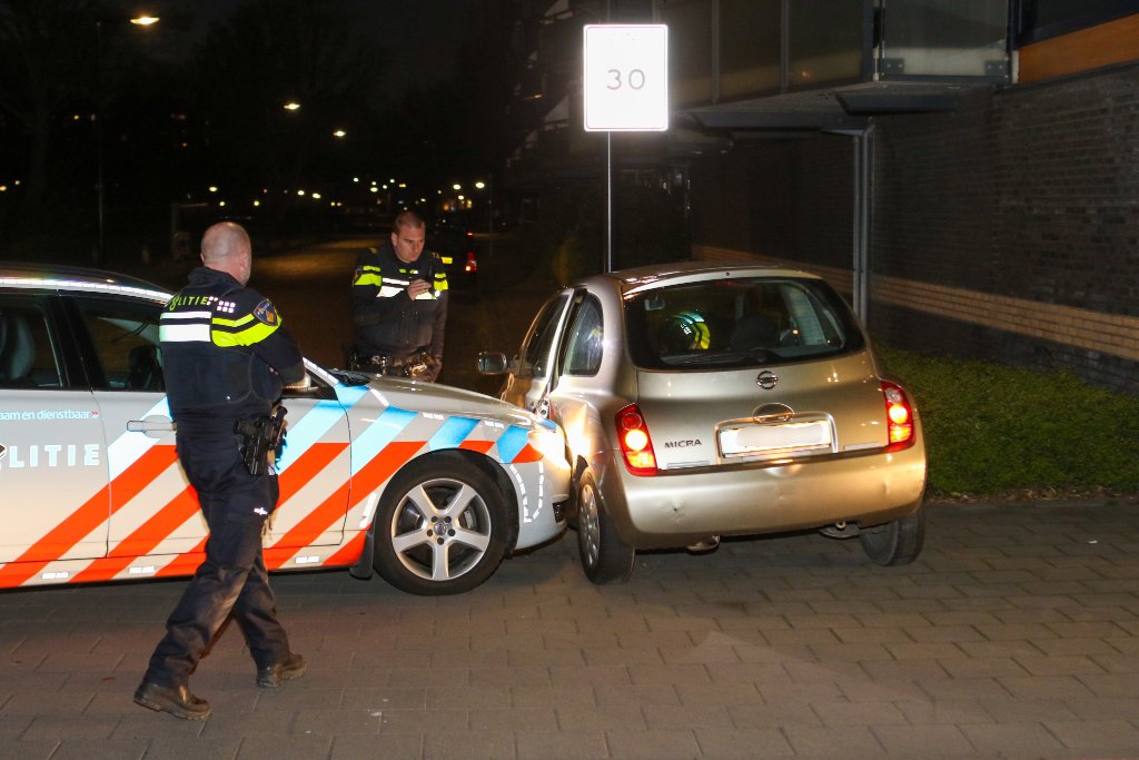 VLAARDINGEN - Een politiewagen heeft vanavond op de Zwanensingel in Vlaardingen - het verlengde van de Schiedamse Laan van Bol'Es, een auto klemgereden.