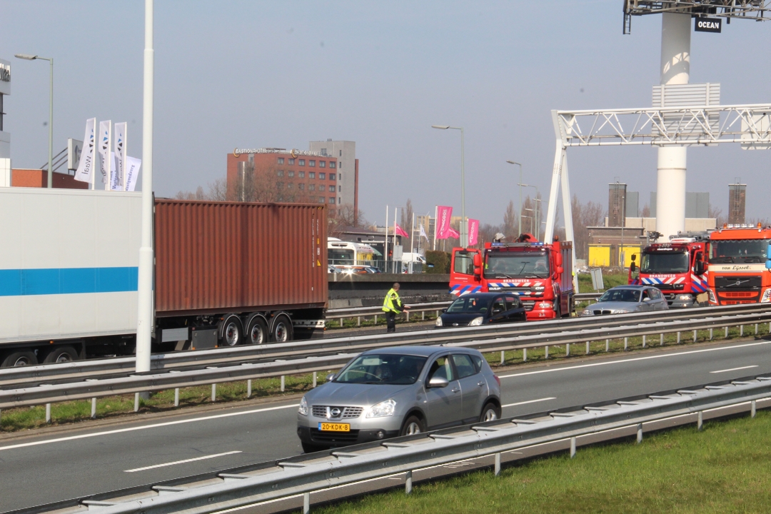 SCHIEDAM - Kort voor de Beneluxtunnel (richting het zuiden) heeft een aanrijding plaatsgevonden waarbij meerdere vrachtwagens zijn betrokken.