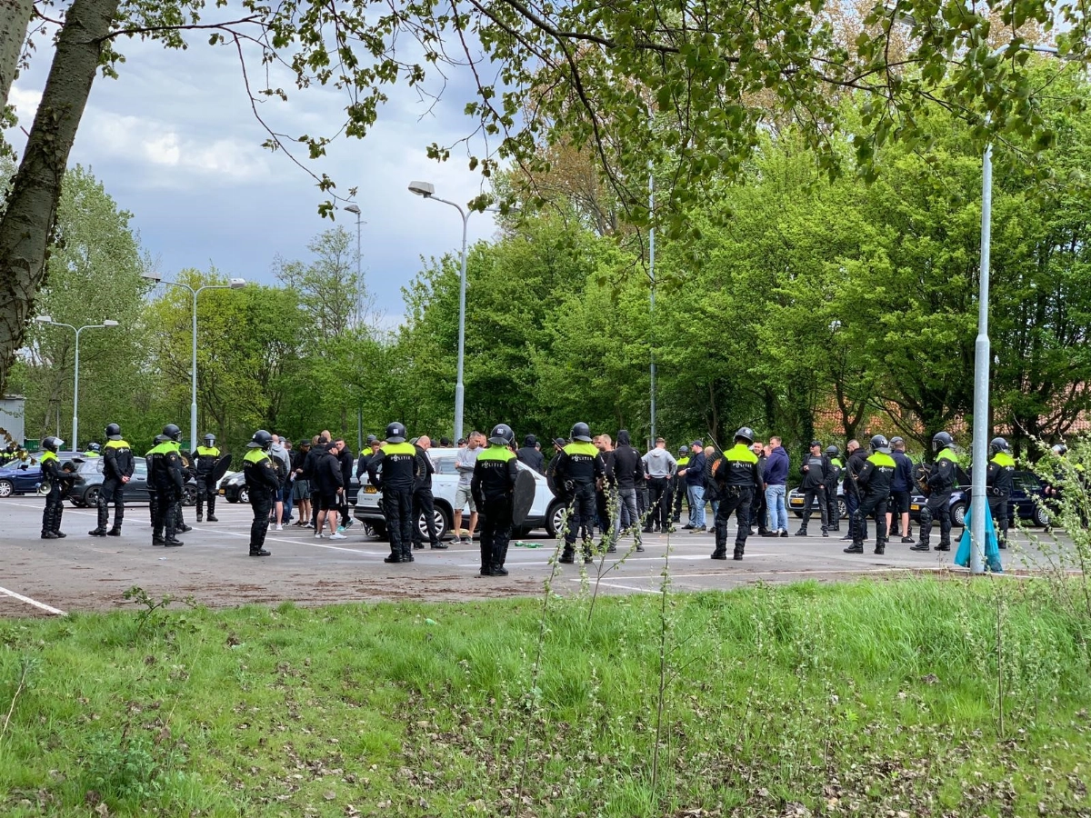 VLAARDINGEN - Een groep van zo'n zestig Feyenoordsupporters die zich had verzameld bij het DVO-terrein aan de Marathonweg heeft vandaag 'bezoek' gekregen' van de politie.