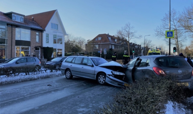 Het lijkt er op of de twee frontaal op elkaar zijn gebotst waarbij één van de auto’s deels op het fietspad terecht is gekomen.