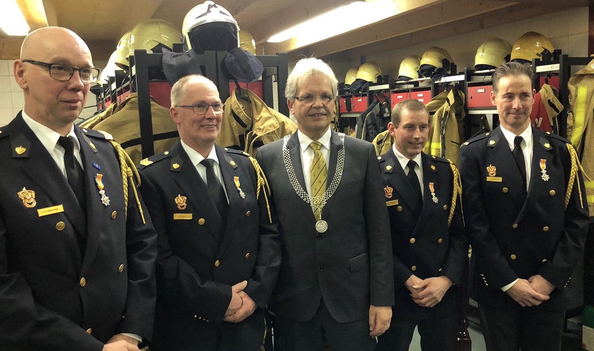 Prachtige korpsavond brandweer Terwolde. Vier mannen kregen een (verrassende) Koninklijke Onderscheiding met bloemen partners, 2 jubilarissen en 1 nieuw lid.