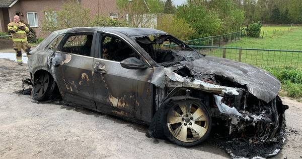 VUGHT - Een elektrische auto is maandagochtend compleet uitgebrand aan het Wildpad in Vught. De brandweer had het vuur al meermaals onder controle, maar het laaide toch telkens weer op. Uiteindelijk zijn brandweermannen zo'n 4,5 uur in de weer geweest met de brand.