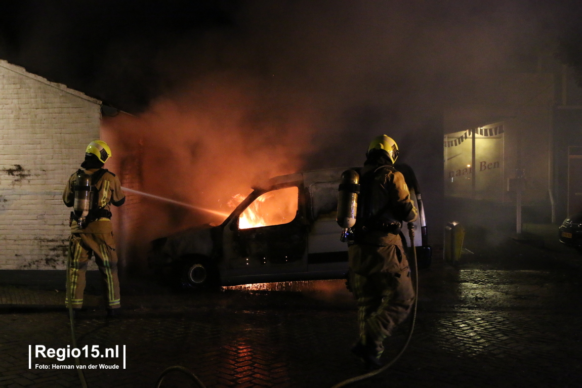Bij aankomst van de brandweer stond het voertuig volledig in brand, waarbij de brand deels was doorgeslagen naar een naastgelegen schuurtje. De brandweer bestreed de brand van zowel het voertuig als het schuurtje met twee stralen hoge druk.
