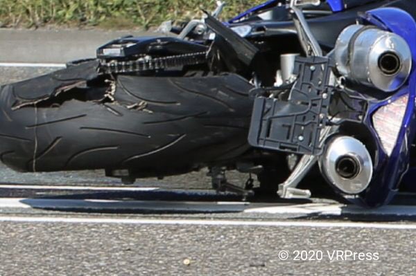Wat er precies gebeurd is, is niet bekend, wel is goed te zien dat de motor een klapband heeft.