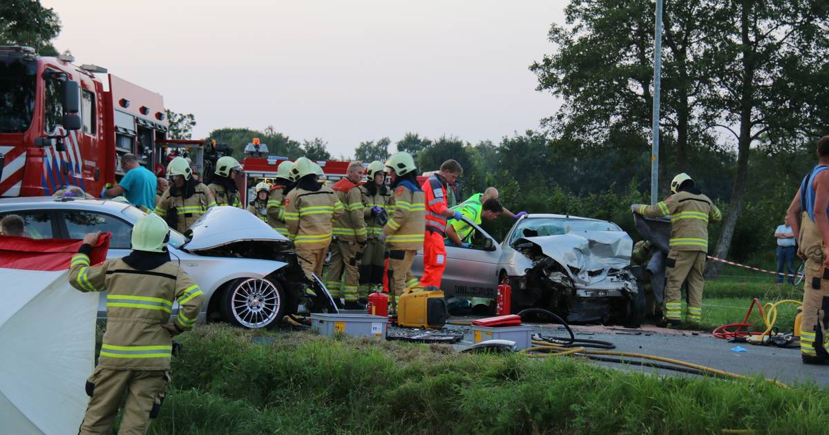 Het ging ‘gruwelijk hard’, zag een fietser die op de Laageindeweg in Kootwijkerbroek ingehaald werd door een auto, en even later getuige was van een nagenoeg frontale botsing tussen die auto en een tegenligger. De ravage was enorm na de knal. Vier inzittenden werden met vooral veel botbreuken afgevoerd naar ziekenhuizen.