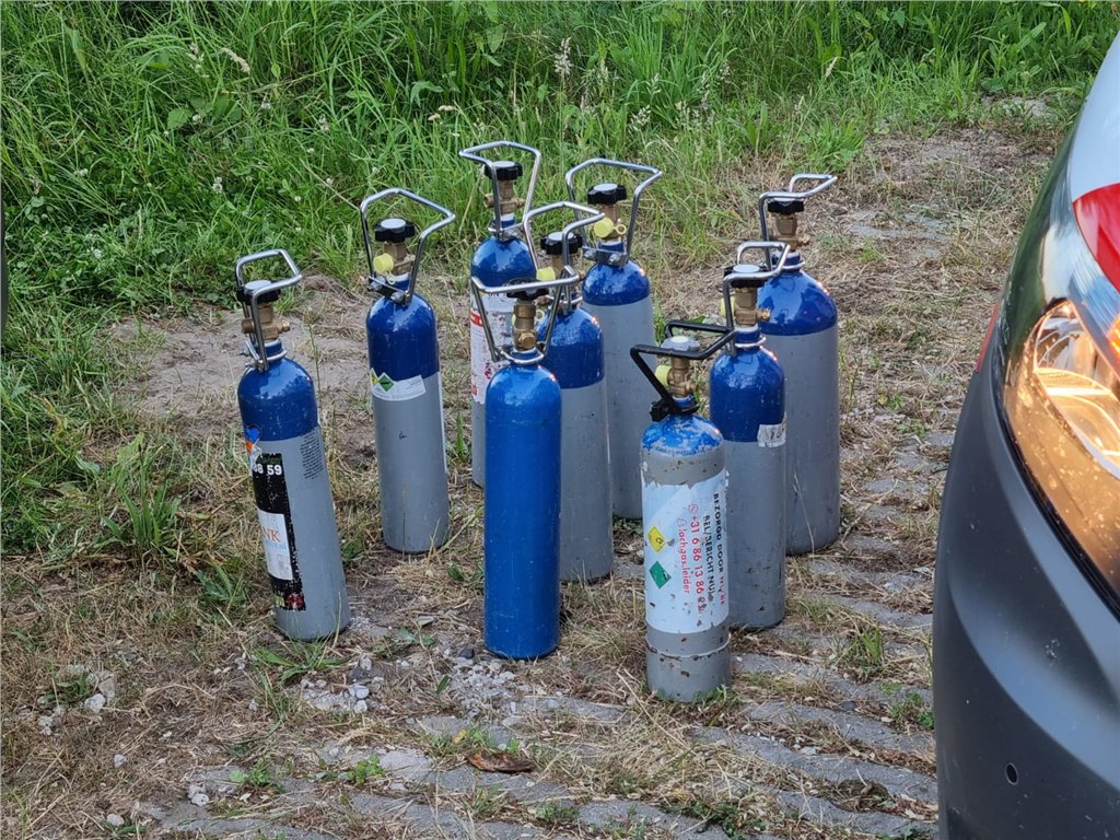 Toen vrienden van de man ter plaatse kwamen bleek dat ze negen flessen lachgas in hun voertuig vervoerden.