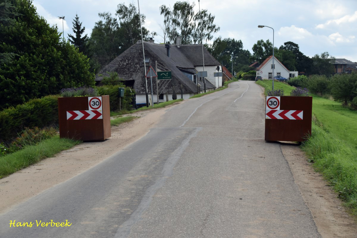 De vorige opstelling viel bij veel weggebruikers in het verkeerde keelgat, die vonden dat het slalommen tussen de bakken juist gevaarlijker was geworden. Vooral voor vrachtverkeer en landbouwvoertuigen ondervonden de nodige hinder om de bloembakken te passeren. Onbekenden hadden enkele weken geleden uit frustratie de bloembakken van de dijk geschoven. De gemeente heeft nu de bloembakken tegenover elkaar aan weerskanten van de dijk geplaatst, waardoor er nog maar een voertuig tegelijkertijd door de versmalling kan. De foto’s hieronder zijn van enkele weken geleden. De foto boven het verslag is van de nieuwe situatie