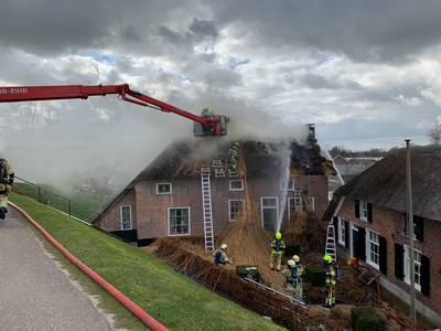 NEDERHEMERT - Een uitslaande brand in een rieten kap heeft maandag grote schade veroorzaakt aan een woonboerderij aan de Maasdijk in Nederhemert.