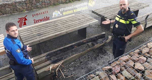 Op de dijk tussen de Strandweg en de RCN Vakantiepark in Zeewolde is in de nacht van maandag op dinsdag een picknickbank in de brand gezet.