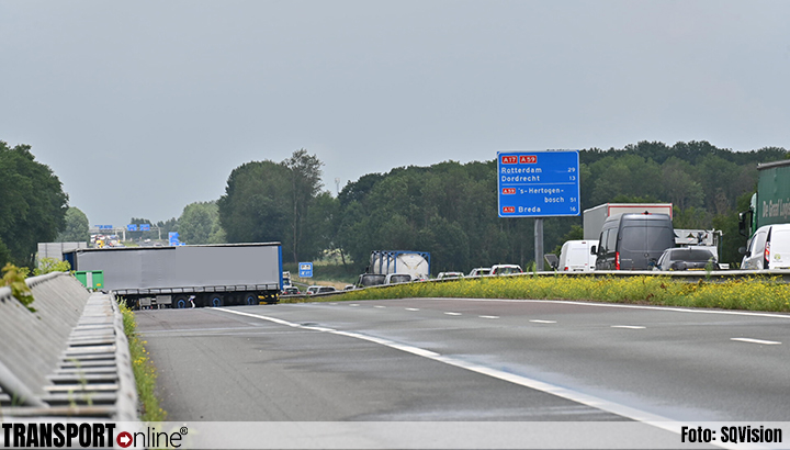 MOERDIJK - Op de A17 is maandagmiddag, door nog onbekende oorzaak, een vrachtwagen geschaard richting Roosendaal voor Industriegebied Moerdijk.