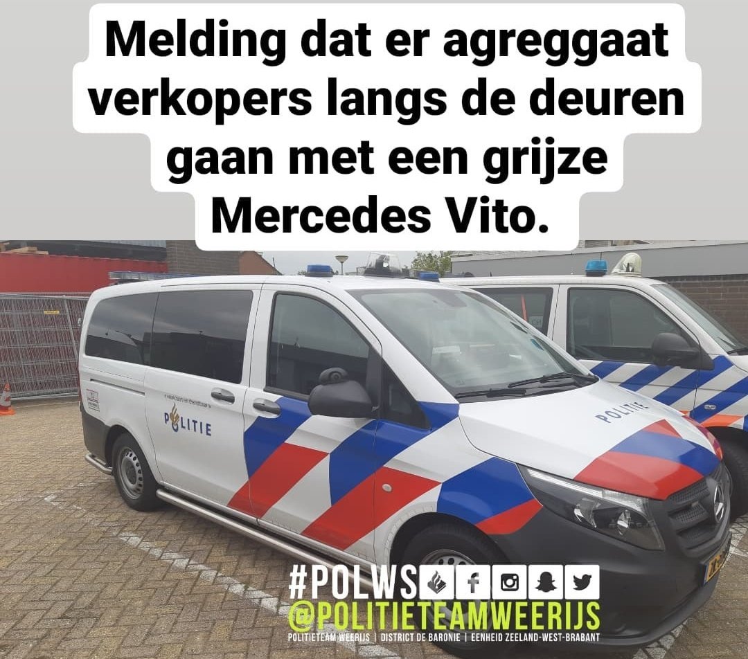 Verkopers rijden in een grijze #Mercedes Vito. Ga niet in zee met deze verkopers. Te mooi om waar te zijn? Niet doen! #politie #polws ^mb