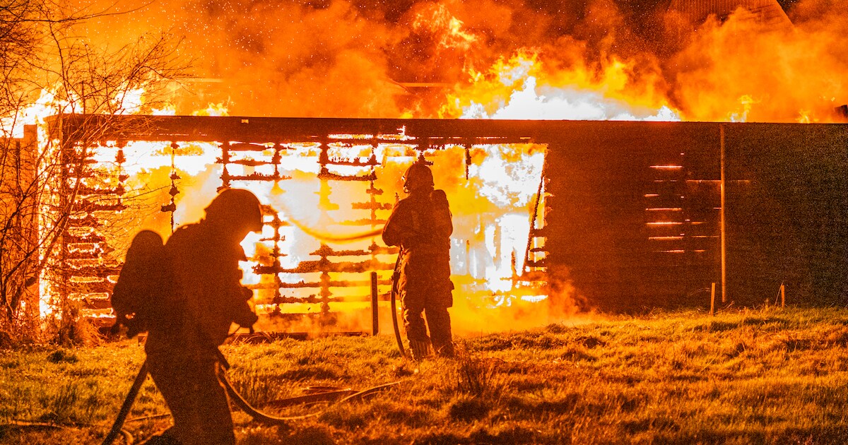 Een schuur naast een huis op de De Brouwerij in Gerkesklooster is in de nieuwjaarsnacht in vlammen opgegaan. Door de brand is ook een schutting verwoest, en een huis ernaast heeft schade geleden.