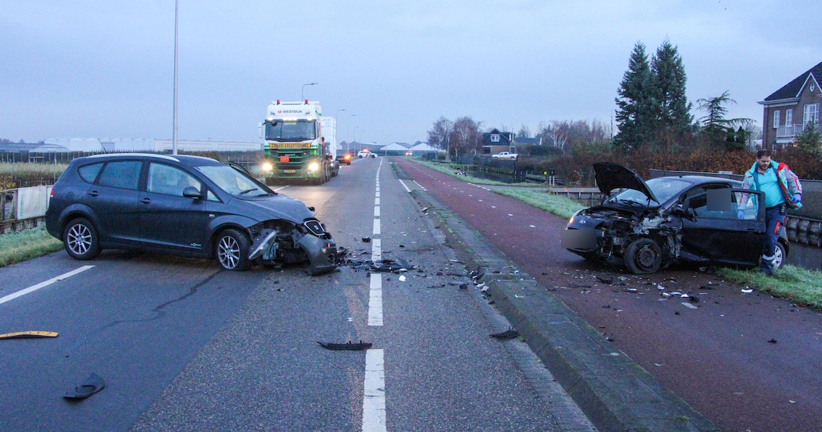 Twee automobilisten zijn dinsdagochtend frontaal met elkaar in botsing gekomen op de Voshol in Boskoop. Daarbij ontstond een ravage. De weg is dicht.