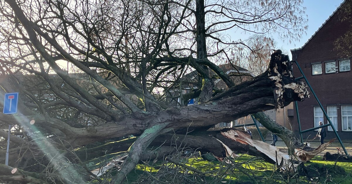 Een monumentale kastanje in Amersfoort heeft storm Christoph niet doorstaan. De boom in aan de Huzarenstraat in Randenbroek is volledig verwoest door de harde rukwinden van donderdagochtend.