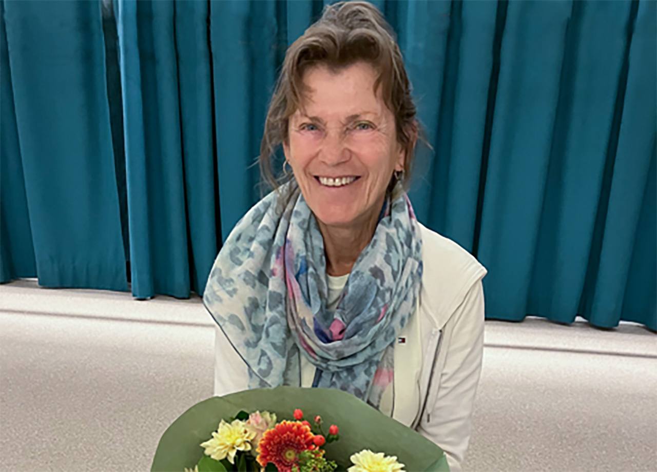 Uithoorn – Op 1 oktober 2023 was Marga Bakker 25 jaar in dienst bij VDO sport. Het bestuur en enkele leden bedankten en feliciteerden Marga. De bloemen, het lekkers en de aandacht kwamen als een verrassing voor Marga, die de dag nietsvermoedend haar yogales gaf in het KNA-gebouw op het Legmeerplein. Al 25 jaar geeft Marga Bakker wekelijks inspirerende lessen Yoga en Pilates. Samen met Marga halen de leden en het bestuur die dag herinneringen op uit de begintijd van haar carrière als leidster bij VDO. “Ik weet dat ’s winters de wind door de gymzaal aan de Christinalaan gierde” zegt Adri, bestuurslid VDO. “Nou,” antwoordde Marga, “en in de zomer was het er snikheet! Ik gaf daar Aerobics” vertelt Marga, “nu noemen we dat ‘Bodyshape’ bij VDO.”