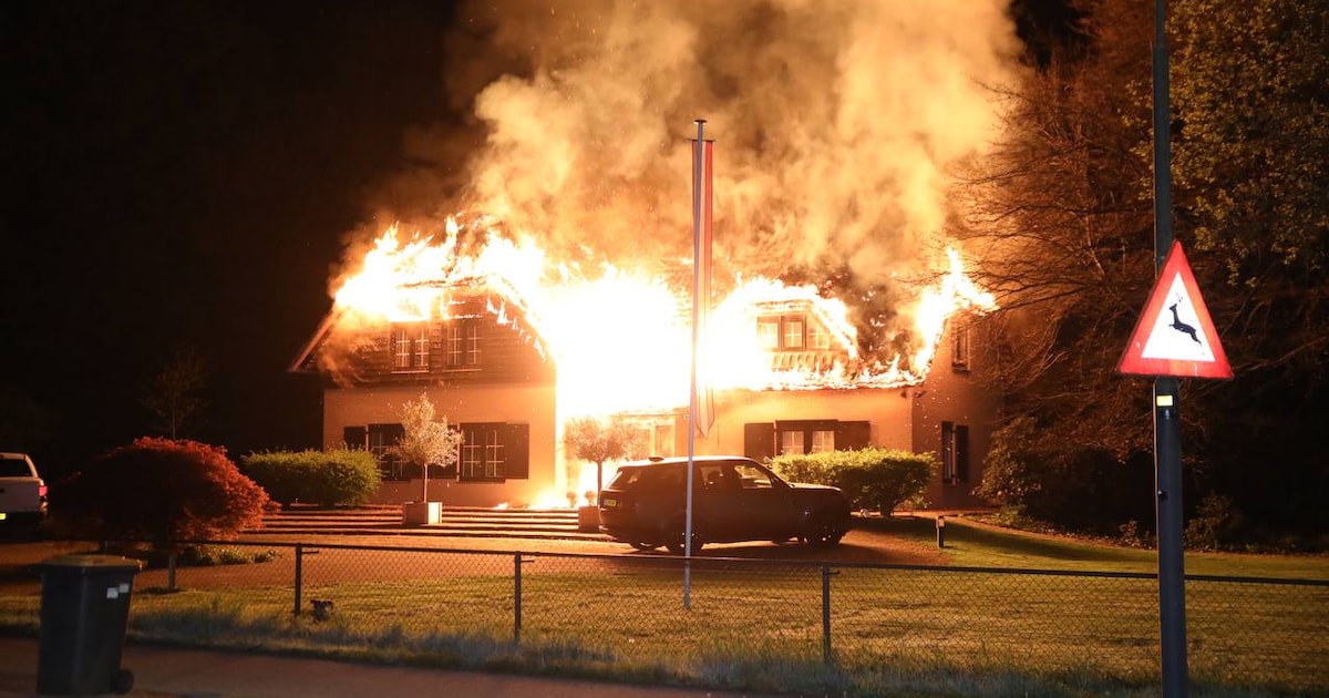 Een villa met rieten kap in Ugchelen is in de nacht van zondag op maandag volledig afgebrand. Een bewoner is daarbij gewond naar het ziekenhuis gebracht.