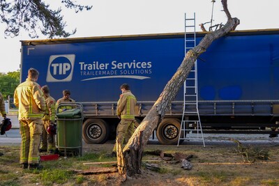ASTEN - Een boom is woensdagavond op een geparkeerde vrachtwagen bij Asten gevallen. Dat gebeurde op een verzorgingsplaats langs de A67.