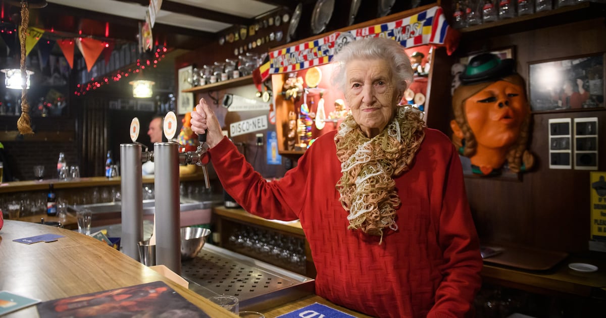 ‘Als ik honderd word, rijden ze me door heel Baarle’, verkondigde ze twee jaar geleden nog. Maar cafébazin Nel Jacobs-Peeters is zaterdag op 98-jarige leeftijd overleden. ‘Disco Nel’ stond meer dan zeventig jaar achter de toog van café Nova in de Molenstraat in Baarle-Hertog.