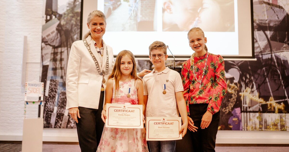 Siem Souren (11) uit Beek en Emily Rooyen (10) uit Spaubeek hebben maandag een kinderlintje gekregen uit handen van kinderburgemeester Fleur Gelissen. Siem kreeg het lintje voor zijn inzet voor de voedselbank, en Emily voor het redden van haar broertje.