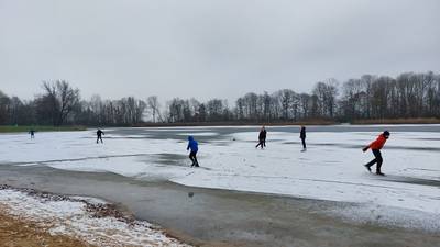 BEEK/OOIJ - Schaatsliefhebbers zoeken bij Nijmegen plassen en plasjes op om op hun vrije dag nog te kunnen schaatsen. Heel massaal is het allemaal niet, maar wél gezellig.