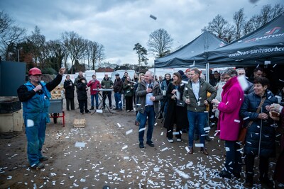 RIETHOVEN - Toekomstige bewoners en nieuwsgierige omwonenden konden eindelijk proosten op de komst van de 44 nieuwe woningen in hartje Riethoven. Want na twintig jaar plannen maken, zijn de werkzaamheden nu officieel van start gegaan op het bouwterrein ‘Achter de Sleutel’.