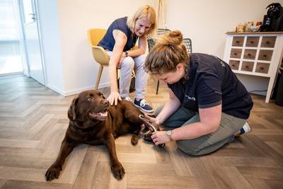 WESTERHOVEN - Een haan die maar niet kon blijven staan? Een alpaca met een gescheurde kruisband? Denise Ellermeijer (32) zag ze voorbijkomen in haar werk als orthopedisch technoloog en hielp ze weer vooruit. De een kreeg een speciale broek aangemeten en de ander een pasklare brace.