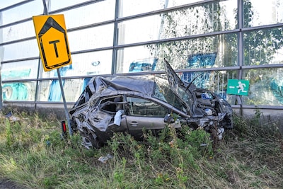 PRINSENBEEK - Een auto is dinsdagavond rond 18.00 uur tegen een geluidswal tot stilstand gekomen op de A16 bij Prinsenbeek. De auto raakte daarbij zwaar beschadigd. De bestuurder raakte gewond.
