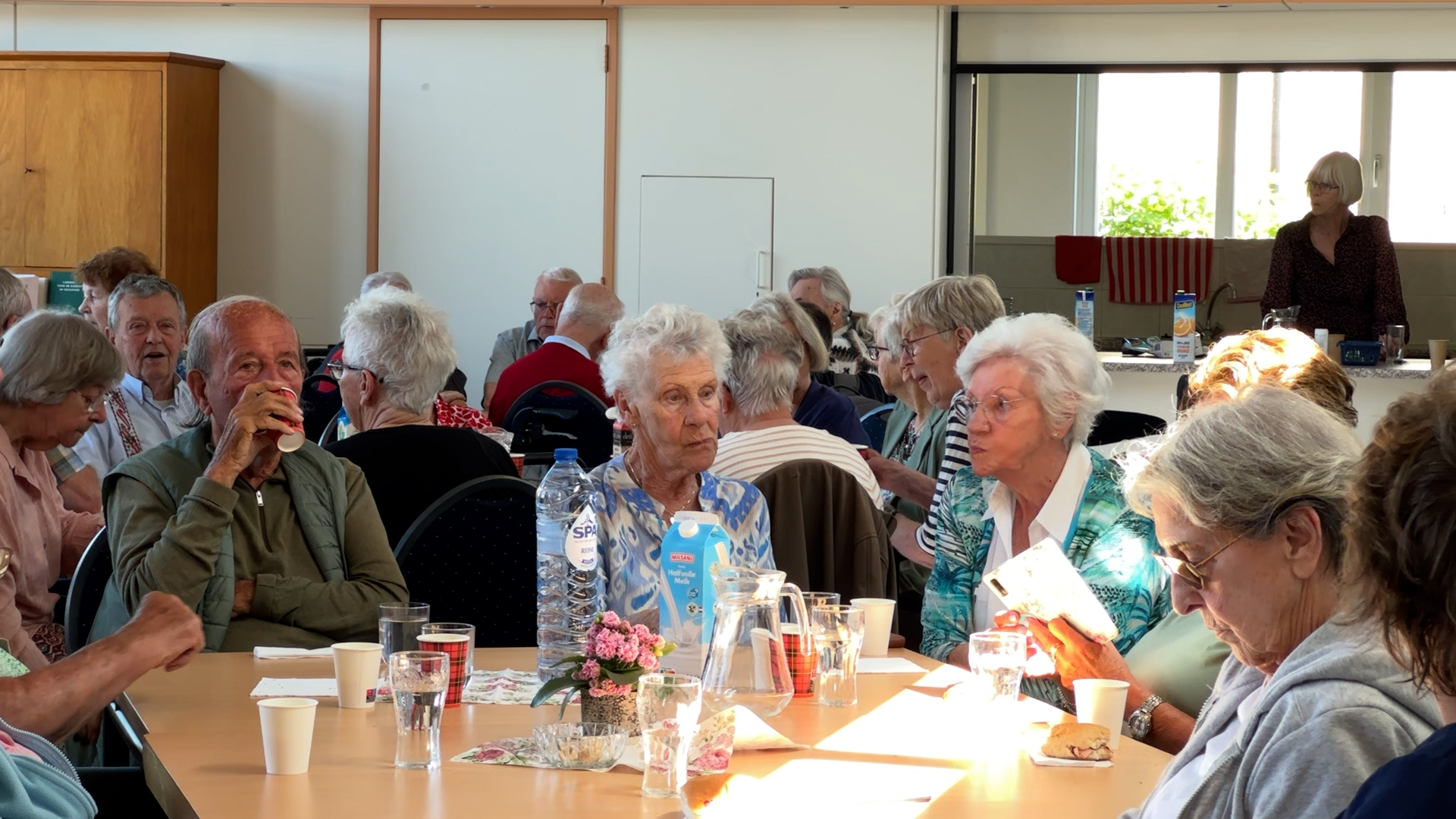 Mijdrecht - Meer dan honderd bewoners van seniorencomplex De Kom in Mijdrecht werden vandaag na een gaslek urenlang opgevangen in een bijgebouw van de Janskerk. Zij kletsten, aten samen en zongen verjaardagsliedjes. "Kan je niet zorgen voor kaarten? Dan kunnen we klaverjassen."