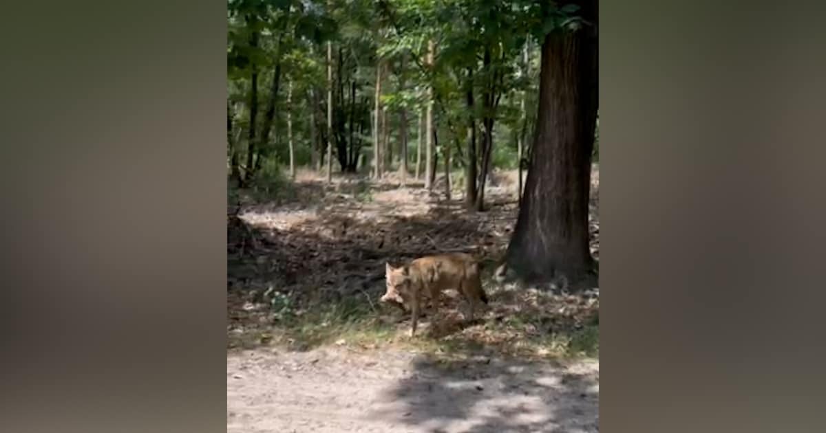 Op de laatste dag van de Otterlose Fietsvierdaagse in Gelderland maken Tonnie en Ivonne Broekhuis uit Saasveld een korte sanitaire stop langs de bosrand. Als zijn vrouw het bos uit komt lopen, ziet haar man gelijk dat ze niet alleen is. Achter haar aan loopt een wolf, op nog geen 5 meter afstand. Met vermoedelijk een schedel in zijn bek.