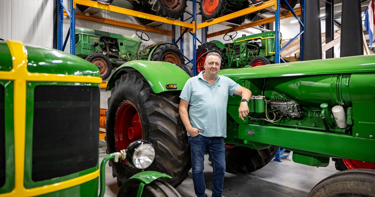 André Vennegoor voor zijn ‘Argentijn’. Het is een van de 70 Deutz-tractoren in zijn collectie.