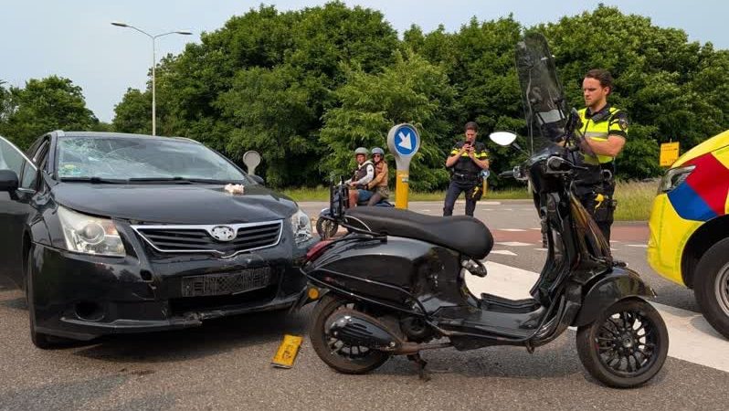 De aanrijding gebeurde zondag rond 16.30 uur op de kruising van de Wolborgenmate en de Liemersweg. Een automobiliste rijdende over de Liemersweg wilde afslaan naar de Wolborgenmate maar zag hierbij een scooter over het hoofd, met een frontale botsing tot gevolg. Door de klap liep de bestuurster van de scooter letsel aan haar been op. De passagier liep verwondingen op aan zijn neus en schouder, mogelijk raakte deze uit de kom.