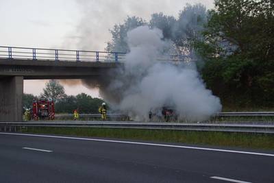 GAANDEREN - Het verkeer op de A18 is zondagavond stilgelegd omdat er een auto op de snelweg in brand stond. Bij de brand kwam veel rook vrij.
